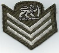 | RB11.Reproduction Rhodesian Army Army rank badge for camouflage uniform.3 chevrons with white lion and tusk over pick. Sergeant. $12.95 |
